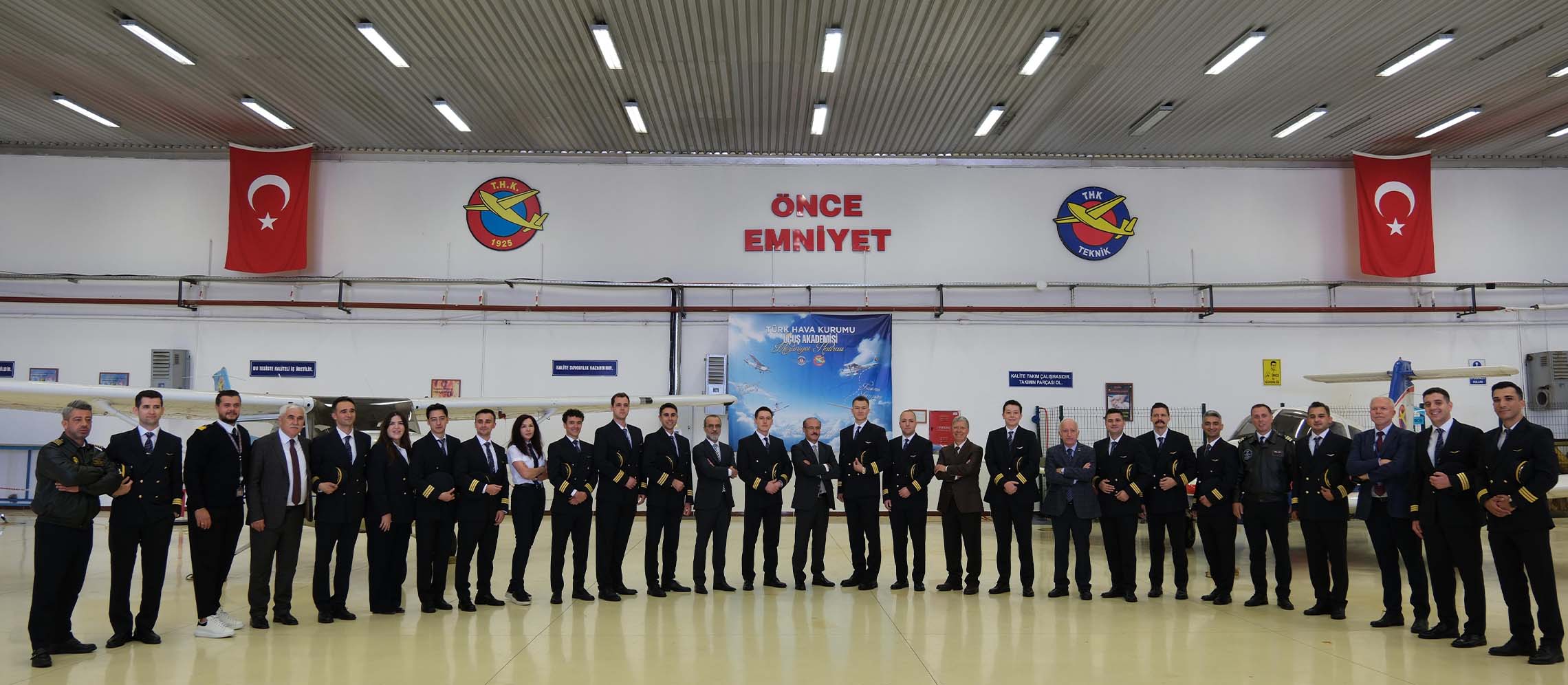 Türk Hava Kurumu Kayyum Heyeti Başkanı Vali Kemal Yurtnaç, THK Üniversitesi Rektörü, TUA ve Türk Hava Yolları yöneticileri, öğretmen pilotlar, aileler ve davetlilerin katılımıyla THK Uçuş Akademisi Etimesgut yerleşkesinde gerçekleştirilen törende, zorlu ve yoğun bir eğitim sürecini başarıyla tamamlayan pilotlar gurur dolu anlar yaşadı.