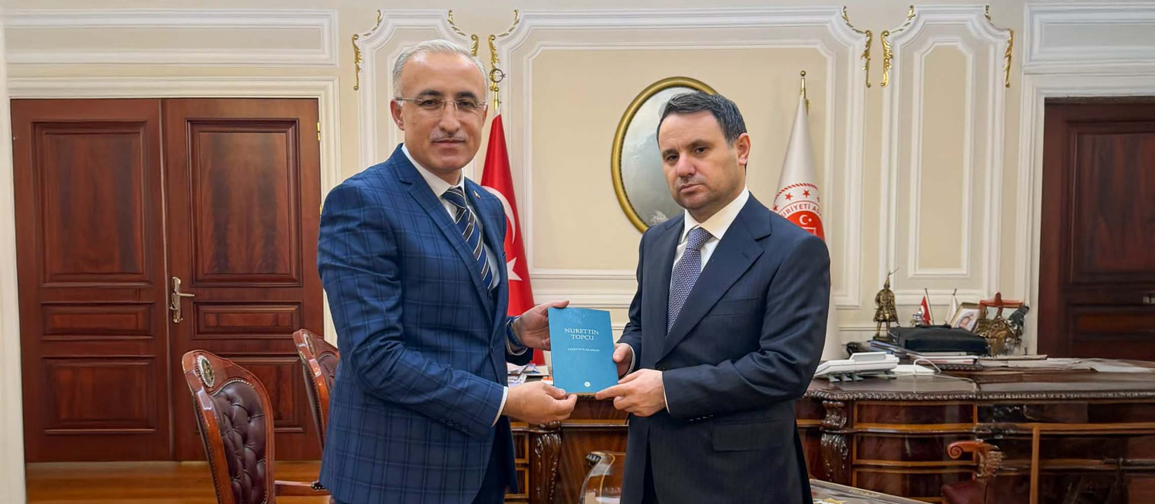 Türk Hava Kurumu Kayyum Heyeti üyeleri Prof. Dr. Hüseyin Karaman ve Av. Kaan Şahinalp'in de hazır bulunduğu ziyarette Prof. Dr. Karaman kaleme aldığı "Nurettin Topçu" eserini Bakan Gürlek'e taktim etti.